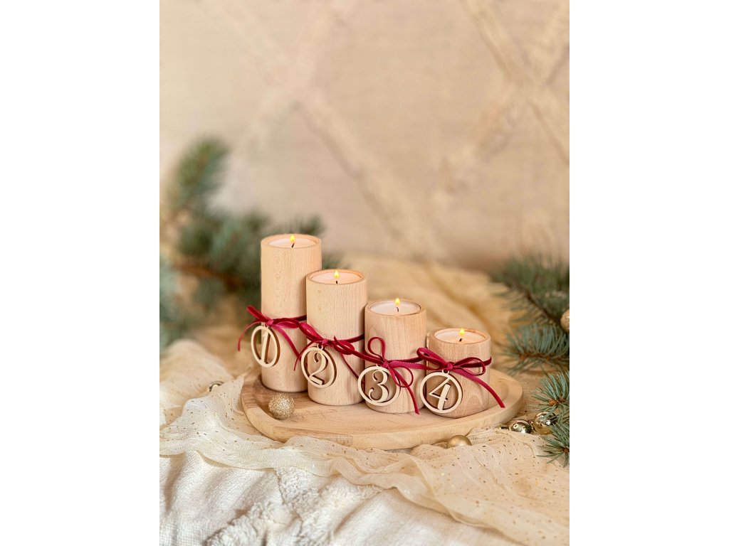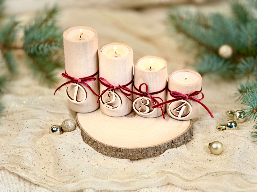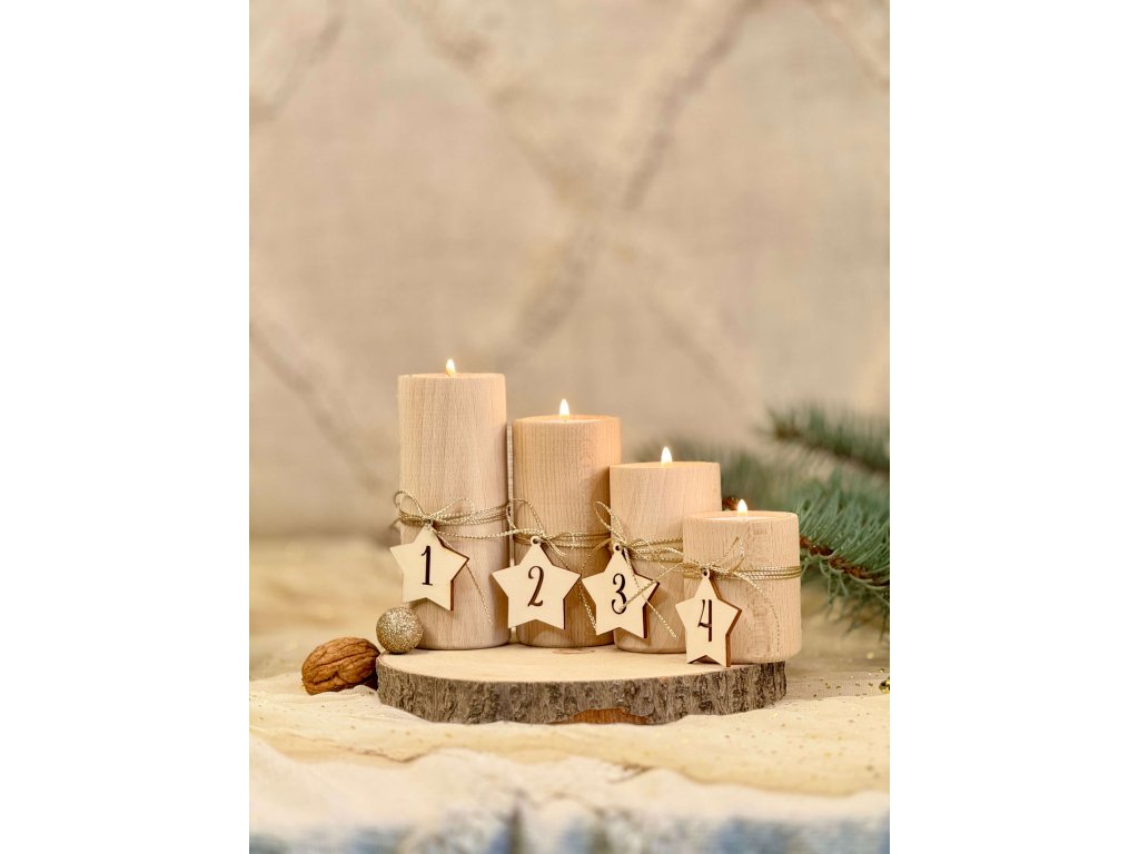 Náš adventný drevený svietnik vyniká čistým dizajnom, prírodným materiálom a jemným detailom ručnej práce. Štyri čísla označujúce adventnú nedeľu sú k dispozícii v dvoch variantoch – hviezdička alebo kruh, takže si ľahko vyberiete štýl, ktorý sa hodí práve k vašej vianočnej výzdobe.