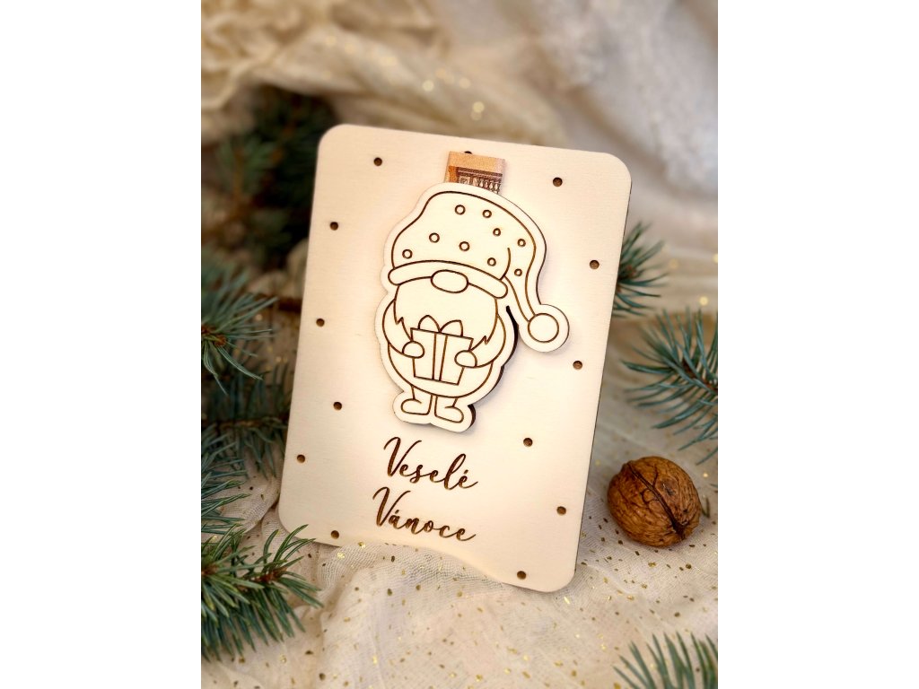Drevená karta na peniaze - Veselé Vianoce, Dedo Mráz